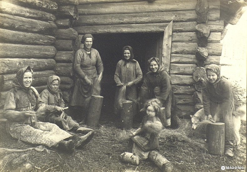 Ж4: - У меня есть мама, папа, на данный момент две бабушки. Есть тётя, дядя, и мой двоюродный брат. И другие, более дальние родственники, с которыми я довольно мало общаюсь. Я родилась в Архангельске, ещё в Советском Союзе. Моя мама работала закройщицей, у нее среднее специальное образование, папа всю жизнь был моряком. Работал сначала какое-то время в архангельском пароходстве, а потом он оттуда ушел. Он уже много лет работает за границей, как называется, “под флагом”. Он прошел путь от моряка до помощника капитана. Дядя мой моряк. У бабушки был муж: не мой дед, он был мужчиной, с которым она жила — в моем детстве — и он тоже был моряком. Я росла в семье моряков. Все детство летом меня отправляли в деревню на Белом море. Вот в этой деревне родилась моя бабушка. Бабушка в раннем возрасте, в семнадцать, что ли, лет, уехала из деревни, жила в Архангельске, в Коряжме. Сейчас живет в Архангельске. В деревне оставалась моя прабабушка. Когда я была маленькая, прабабушка умерла, и у нее остался пустой дом. Мы туда летом стали приезжать. Приезжаем и до сих пор. Это место я очень сильно люблю, в детстве я всегда ждала, когда меня наконец отправят в деревню. Летом я уезжала в деревню с мамой, потом мама уезжала, приезжала моя бабушка. И я с бабушкой жила. Очень любила это время. Получается, я минимум два летних месяца жила в деревне. Иногда у меня возникали странные ощущения, мол, “а почему мои друзья ездят куда-то на теплое море, на Черное море, например, отдыхать, на юга, а я все время на Белое море езжу”. Но мне никогда особенно печально из-за этого не было, потому что в деревне у меня всегда были друзья. Мне было очень интересно, потому что вокруг лес, море, озера — у нас потрясающая природа! Свой дом, и мне всегда это очень нравилось. Я до сих пор не представляю, как деревня может быть без моря, хотя я бывала в разных деревнях. Потому что море — это же так важно! Летом каждый день в деревне начинался с того, что я шла гулять по морю. Ходишь, смотришь, что принесло море. Разные ракушки рассматриваешь, бывает, мертвых животных вынесет. Медузы… Там все время всё меняется, и это очень интересно. По морю может кто-нибудь пройти, бывает, корабль проходит. Баржа, например, с углем. Были случаи, когда какая-то субмарина пришла! Были слухи в деревне, что был шторм, пришла какая-то субмарина, экипаж потерпел бедствие, и вот они в деревню приехали… Я не знаю, так оно было или нет, но море — это такие ворота, через которые кто-то может к тебе придти. Однажды на берегу мы там чем-то занимались, и я смотрю — а там просто плывет лодка с парусом. Они приплыли, сошли на берег, по деревне гулять... Это было что-то вроде коча. Точно не знаю, я плохо разбираюсь в традиционных лодках, но это был какой-то реконструированный кораблик под парусами. И вот они просто пришли в деревню.